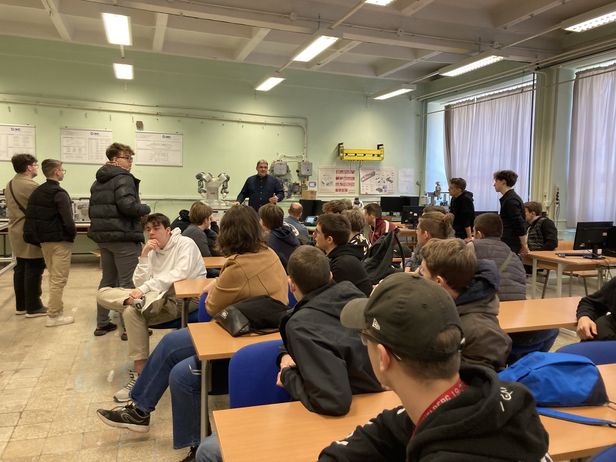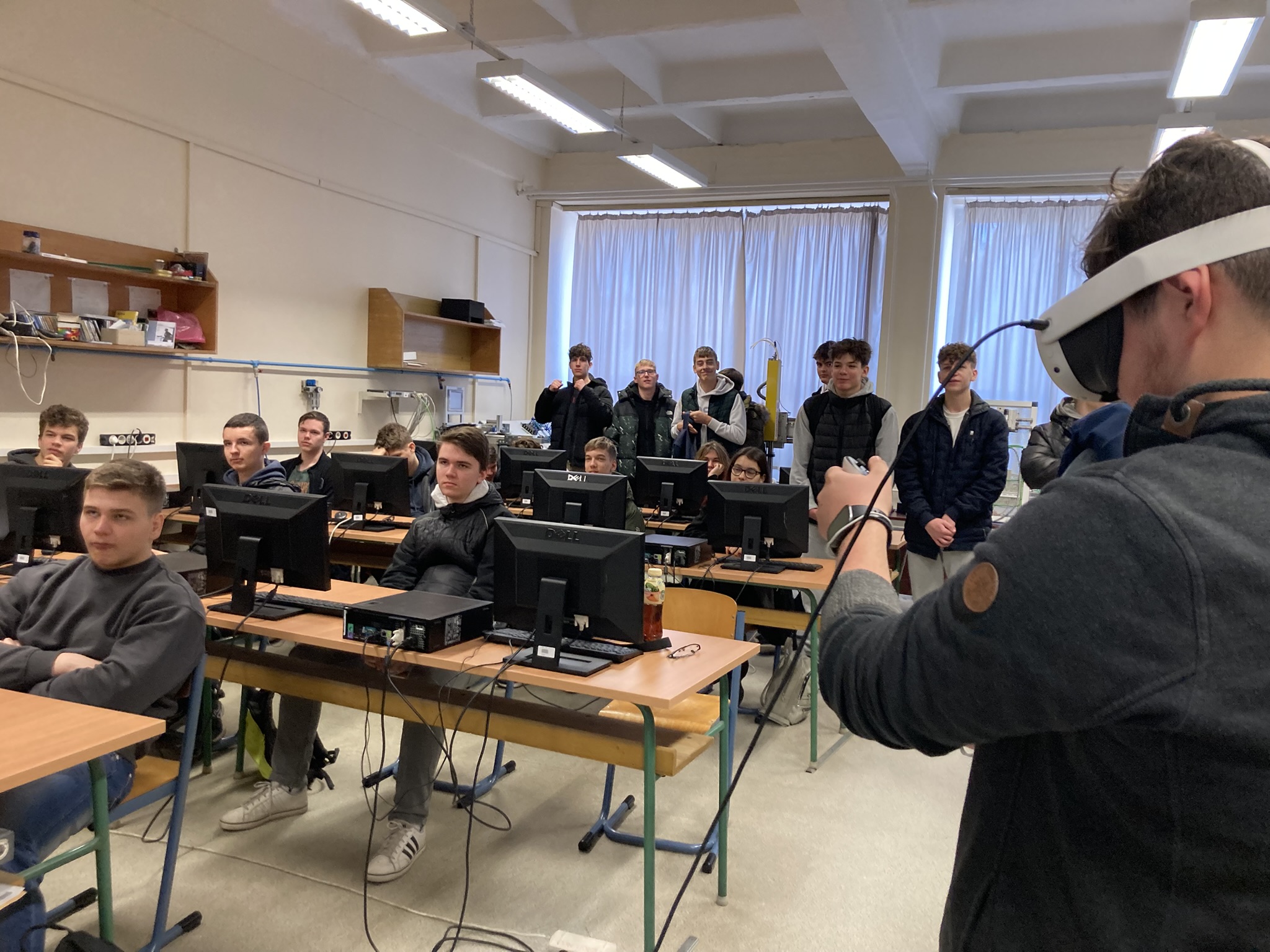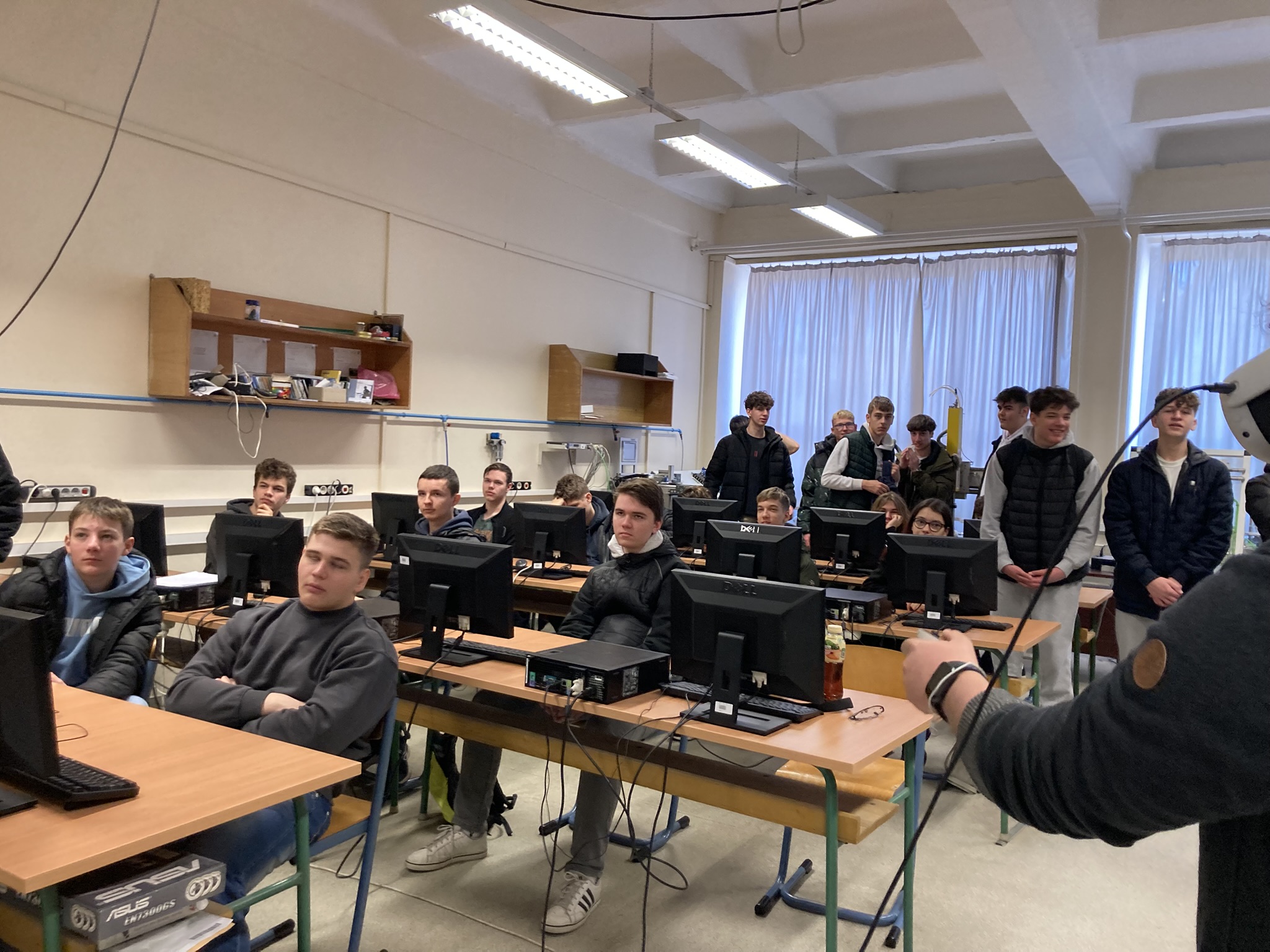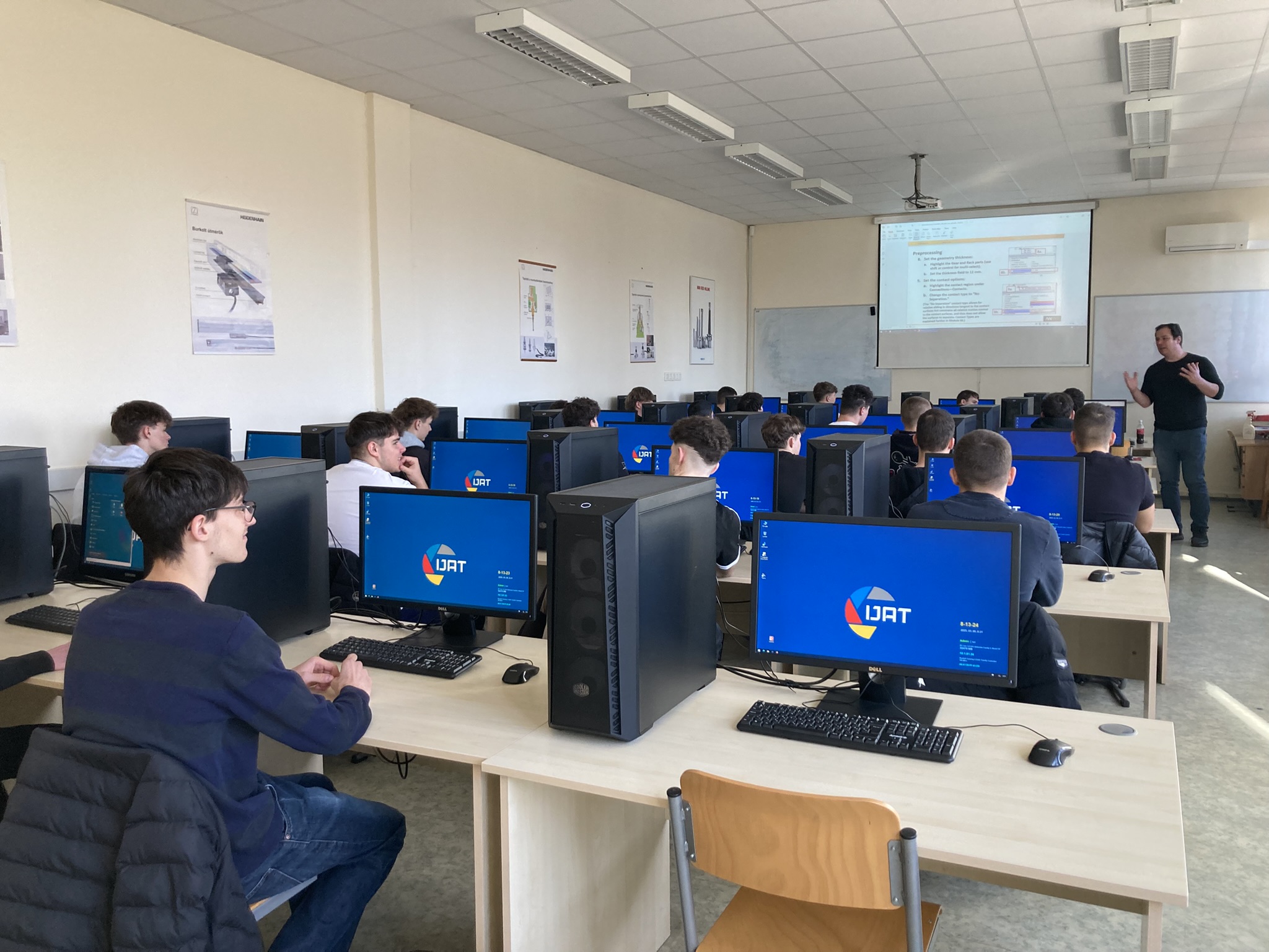 2025. március 6-án tematikus szakmai napokat tartottunk a Kecskeméti Szakképzési Centrum Kandó Kálmán Technikum osztályainak, melyen informatika és távközlés ágazatban 9-13. évfolyam, gépészet ágazatban 11. és 12. évfolyam, elektronika és távközlés ágazatban 11. évfolyam, összesen körülbelül 220 diák vett részt. A tematikus szakmai nap alkalmával a diákok ágazatonként 5-ször 30 perces interaktív foglalkozásokon vehettek részt, például kipróbálhatták az IOS programozást, virtuális gyár szimulációt, Arduino programozást, etikus hackelést, 3D tervezést, additív technológiákat, műanyag fröccsöntést és a PLC programozást.