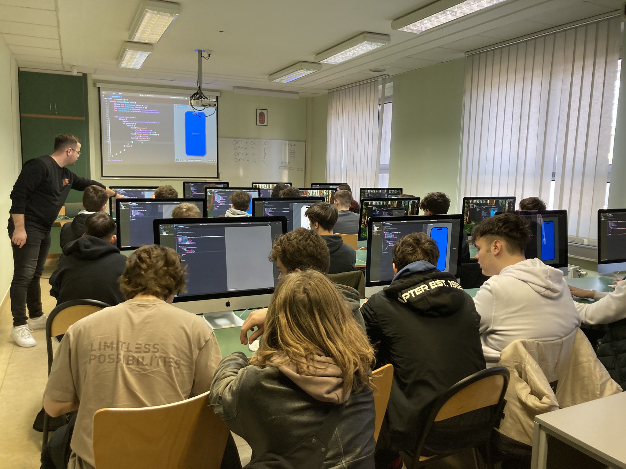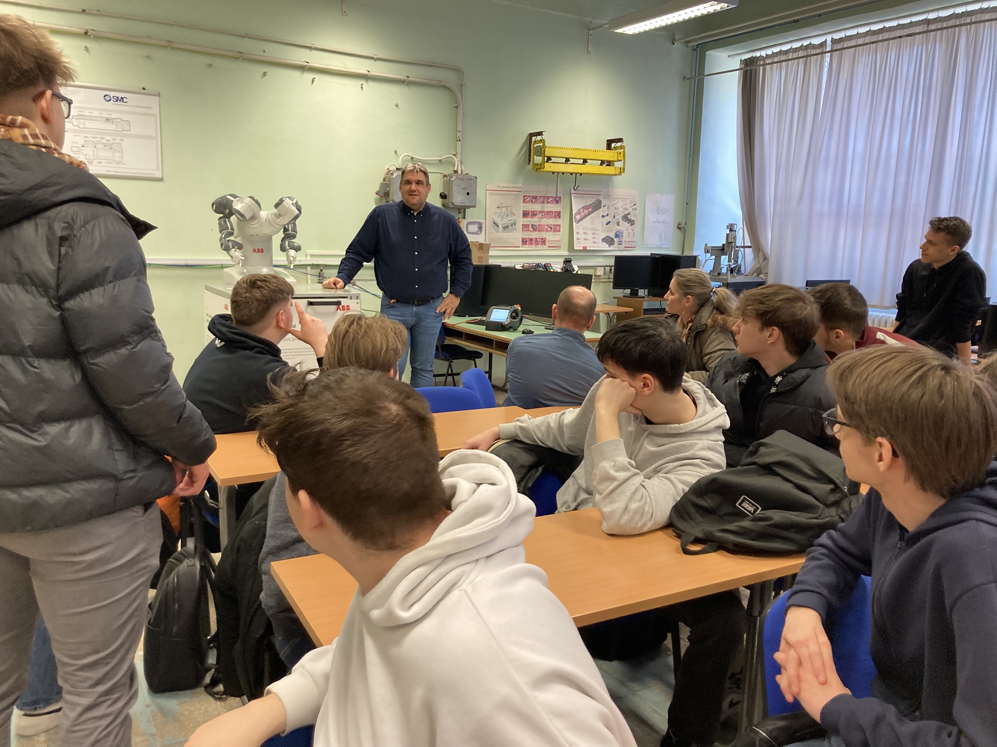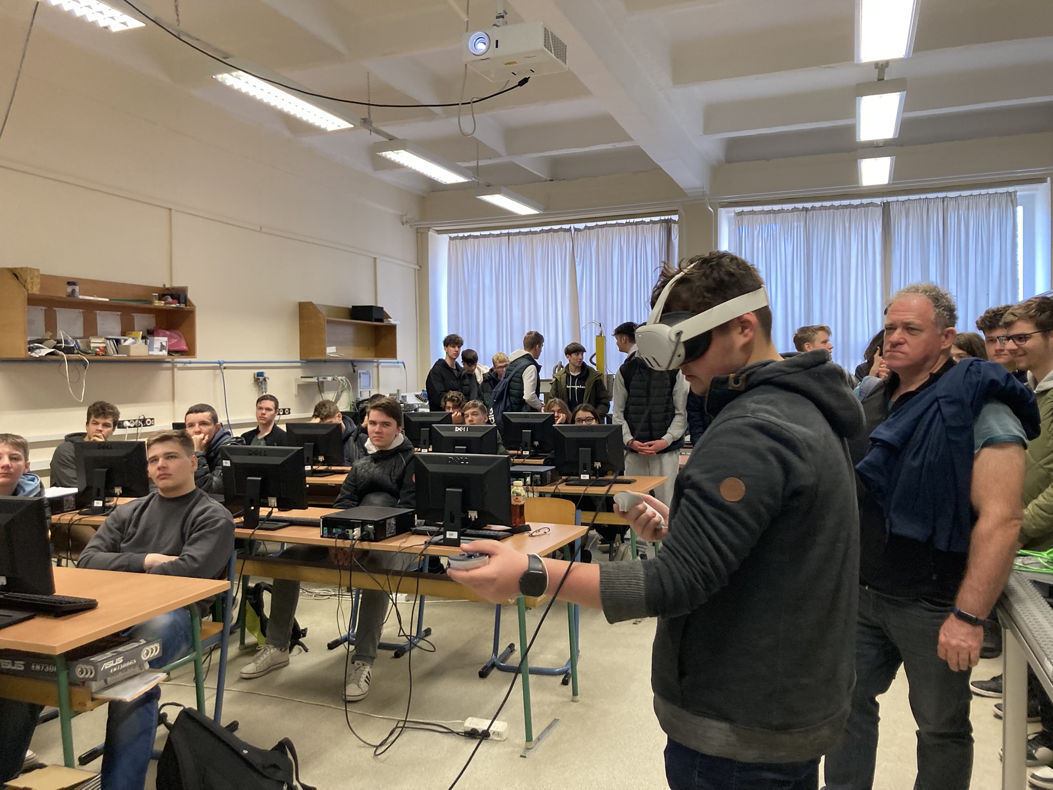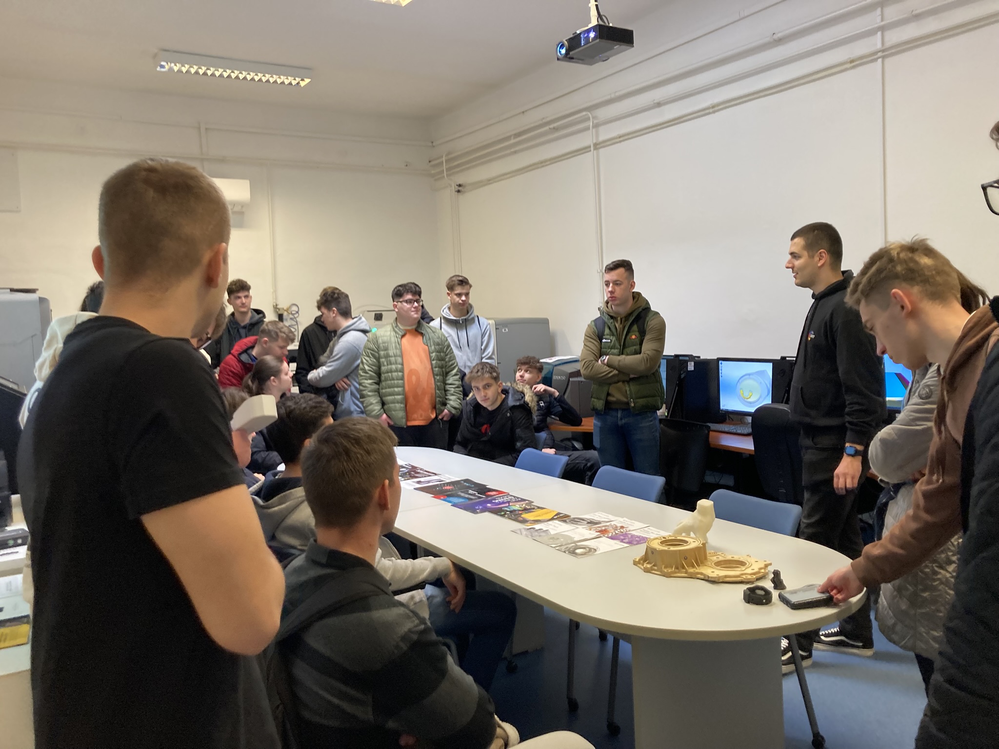 2025. március 6-án tematikus szakmai napokat tartottunk a Kecskeméti Szakképzési Centrum Kandó Kálmán Technikum osztályainak, melyen informatika és távközlés ágazatban 9-13. évfolyam, gépészet ágazatban 11. és 12. évfolyam, elektronika és távközlés ágazatban 11. évfolyam, összesen körülbelül 220 diák vett részt. A tematikus szakmai nap alkalmával a diákok ágazatonként 5-ször 30 perces interaktív foglalkozásokon vehettek részt, például kipróbálhatták az IOS programozást, virtuális gyár szimulációt, Arduino programozást, etikus hackelést, 3D tervezést, additív technológiákat, műanyag fröccsöntést és a PLC programozást.