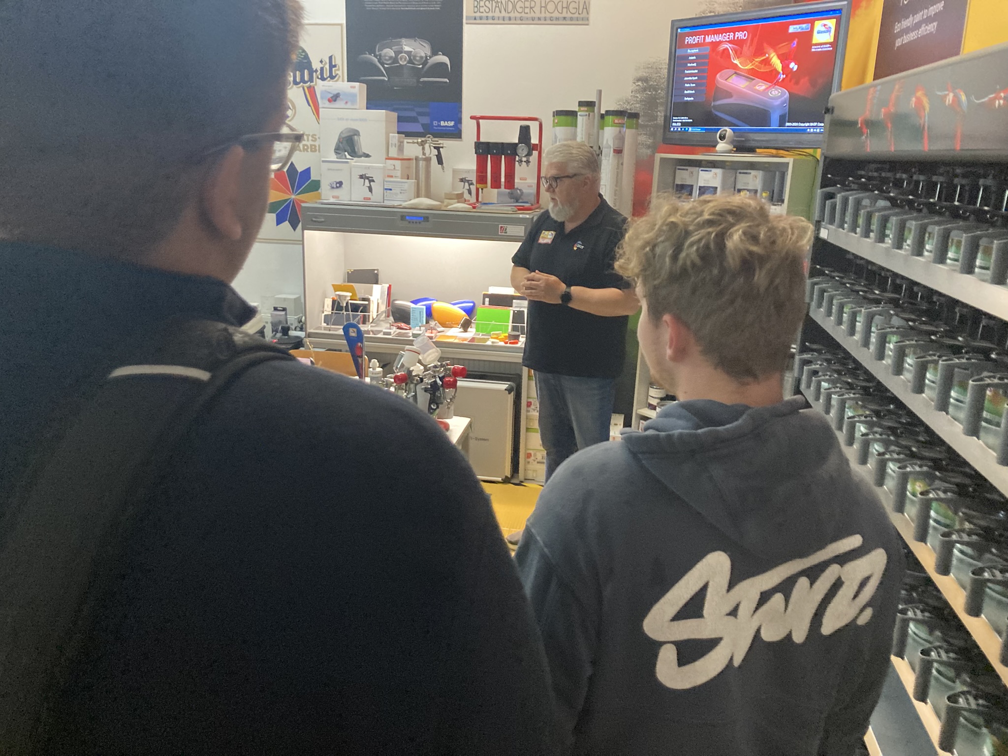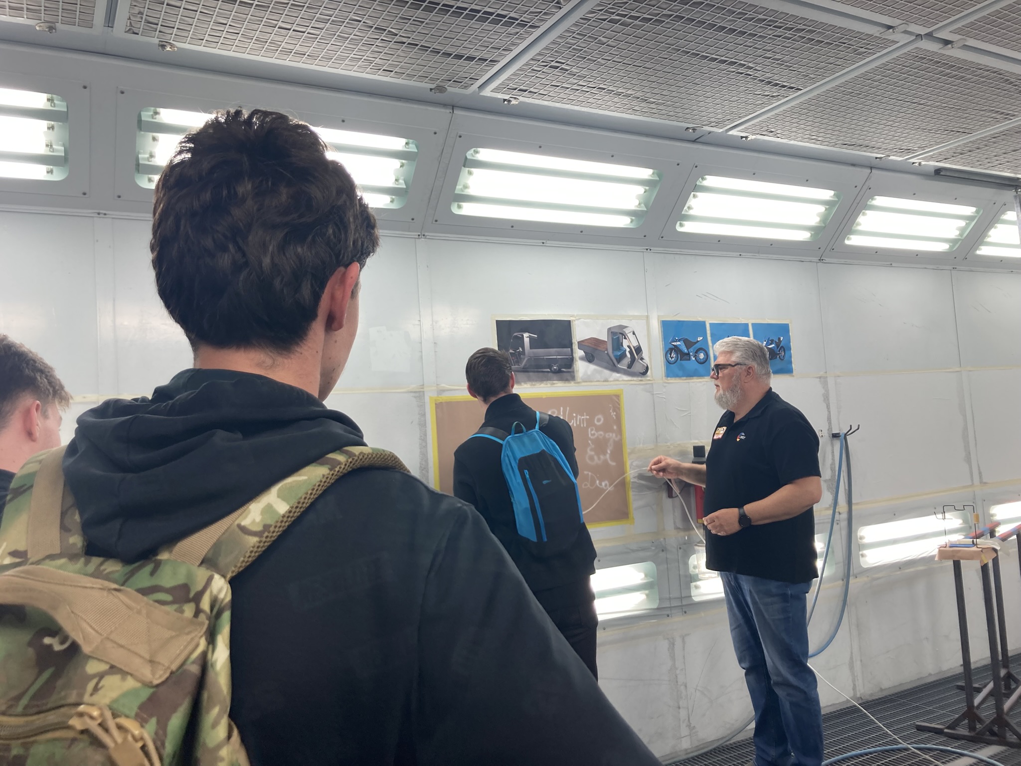 Ebéd után az Innovatív Anyagok és Járművek Tanszéken először a festő és fényező laborban próbálhatták ki a diákok a felületkezelési technikákat, valamint a festékpisztoly használatát.